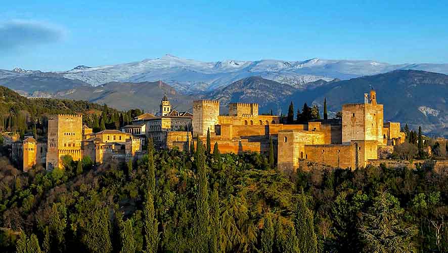 The Alhambra was declared a World Heritage Site in 1984. Its name comes from the redish clay used on the building of its walls (in Arabic, («qa’lat al-Hamra’» means Red Castle). The complex, whose visit requires at least three hours, is located on the Sabika hill, next to the Darro river. It is mainly made up of the Generalife Gardens, the Nasrid Palaces and the Alcazaba, all of them of Arab construction, and the Carlos V Palace and the Church of Santa María, of Christian construction.
